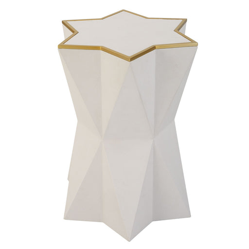 Unique Star Shaped Accent Table Features A Stylish White Faux Shagreen Wrap, Accented With A Hand Applied Gold Leaf Trim.Details:Product Type: Acce...