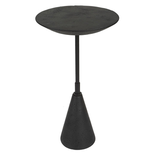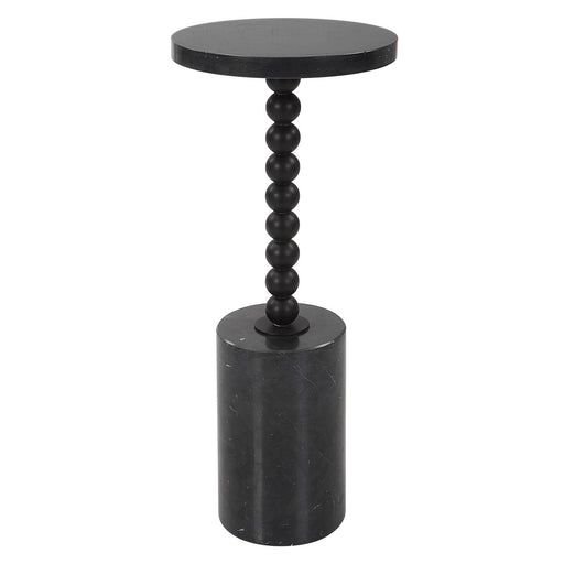 This Accent Table Makes A Dramatic Statement With Its Sleek, All Black Design. The Slim Steel Rod Is Accented By A Black Man-made Stone Top And Foo...