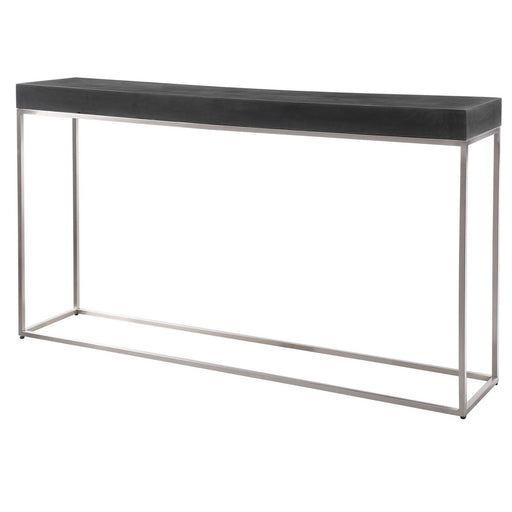 Sleek And Contemporary, This Console Table Features A Black Concrete Look Atop A Brushed Nickel Stainless Steel Base.Details:Product Type: Console ...