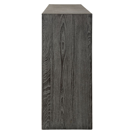 Crafted From Elm Veneers And Solids, This Organic Console Table Features A Chiseled Texture Face In Rich Ebony. Its Timeless Appeal Can Easily Be A...