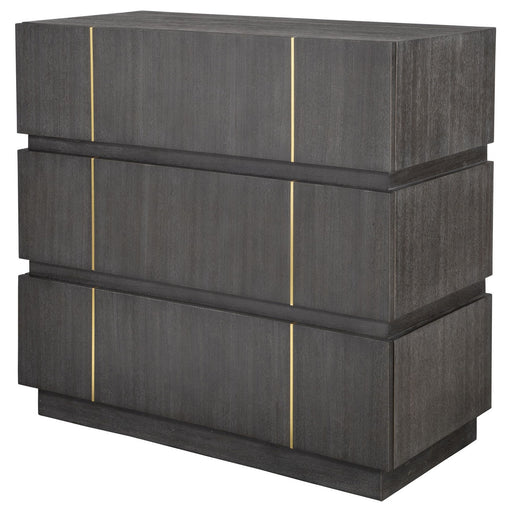 A Clean And Refined Accent Chest Featuring Three Acacia Veneer Drawers In Dark Walnut. The Richness Of The Wood Grain Is Brought To Life By Stunnin...