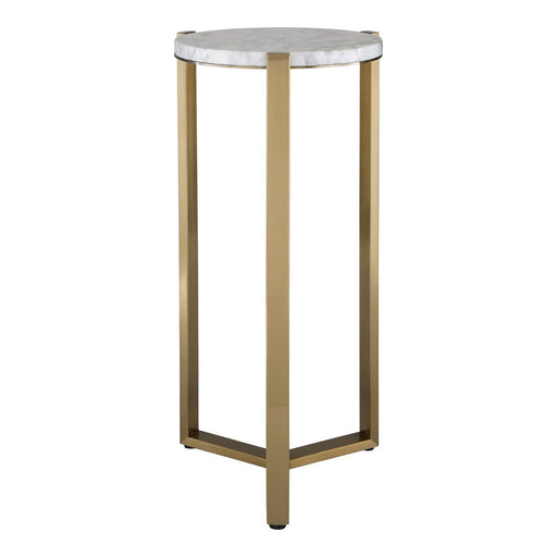 Three Sturdy Antique Brass Finished Legs Fused With A Carrara Marble Top Combine To Create Stability And Elegance In The Pietra Drink Table.Details...