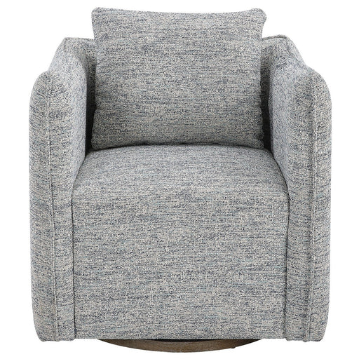 Gentle Curves And Fun Cutouts Give A Unexpected Twist In The Wander Swivel Chair. Upholstered In An Oat Toned Polyester Blend With Wool-like Textur...