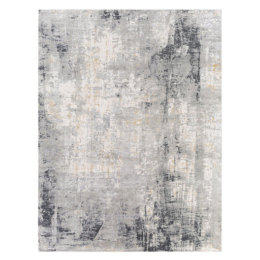 This Machine Woven Rug Features An Abstract Design In Tones Of Light Gray, Off-white, Charcoal And Subtle Tones Of Mustard, Constructed From A Mix ...