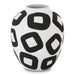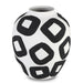 The Pagliacci Medium Black & White Vase is made of the finest porcelain in a dynamic matte white finish onto which black contemporized lozenges with negative spaces in the middle are painted. The hollow centers bring extra power to the black and white vase, which makes the decorative accessory perfect for interior styles from contemporary to mid-century modern and transitional. From its place on a shelf or atop a stack of coffee table books on a foyer table, it will be a dynamic artistic piece.