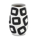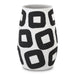 The Pagliacci Large Black & White Vase is made of the finest porcelain in a dynamic matte white finish onto which black contemporized lozenges with negative spaces in the middle are painted. The hollow centers bring extra power to the black and white vase, which makes the decorative accessory perfect for interior styles from contemporary to mid-century modern and transitional. From its place on a shelf or atop a stack of coffee table books on a foyer table, it will be a dynamic artistic piece.