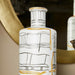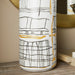A glossy white base boasts irregular calligraphic lines with gold metallic embellishments, giving the Lindus vases an instinctively artful overture. Intersecting lines weave together to create a display of rudimentary elegance on a slender, cylindrical body. The Lindus vases are composed of ceramic and are available in three sizes.