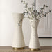 Perfect For Showcasing Your Favorite Blooms Or Simply As Standalone Works Of Art, These Vases Promise To Infuse Your Space With A Sense Of Refined Luxury. The Ceramic Bodies Boast A White Finish With Horizontal Ridge Lines, Adding A Touch Of Texture And Visual Interest To Sleek Curves, All Elegantly Supported By Antique Gold Metal Bases. Sizes: S- 5x15x5, L- 6x18x6