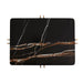Let the stage of your display be a part of the presentation. This tray, made from gorgeously veined bengal marble, is an eye-catching piece on its own with its elaborate rust-colored variations. The slab rests on a low metal rail stand, finished in a handsome antique brass. Marble will vary.