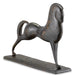The Assyrian Horse Bronze is made from a lost-wax technique where boiling bronze is poured into a mold covering an original wax sculpture that melts away. Once set, there is a very long process of refining the bronze to give it patina. The Etruscan style and the aged finish of this bronze sculpture make it feel like an antique.