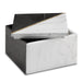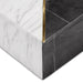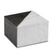 The Deena Black & White Marble Box is geometrically sophisticated. The white and pietra gray marble are juxtaposed against each other in a dynamic way: the two dark sides are topped with a triangle in the same color, and it is the same with the white. Slicing through the middle of the top to separate the two is a brass inlay on slant. The solid marble black and white decorative box has mitered joints and a composite coating on the bottom to keep it from scratching surfaces.