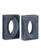 The set of Demi Black Bookends includes two decorative accessories that can stand on their own as sculptural objects or act as stylish bookends. A bevel that softens the oval is carved into the solid travertine on both sides, the cut-out forming an oculus. The shapes create black accessories with sophisticated profiles.
