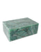 The Green Aventurine Box is a luminous decorative box made of stone. The solid translucent quartz panels that are glued together to create the accessory with an abundance of sheen has the natural material to thank for its iridescence. Because this is an elemental piece, there will be significant variations from box to box, some with a greater number of lighter green tones and others with fewer. The inside of the box has been honed so it is smoother while the outside is matte.