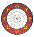 A Meyda Tiffany original design, the Fleur-de-Lis medallion window is an intricate design of Yellow tri-petaled irises and Azure colored jewels against Crimson and Cobalt bands. Reminiscent of castle and cathedral windows, this pattern holds a prominent place in French Heraldry. Handcrafted utilizing the copperfoil construction process and 296 pieces of stained art glass and 24 Azure glass jewels encased in a solid brass frame. Mounting bracket and jack chain are included.