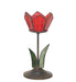 This charming tealight holder is created using the famous Meyda Tiffany copperfoil construction technique. The floral petals are featured in Pink stained glass while accented with Green stained glass leaves below. The figure sits on a Craftsman Brown finished base. The tealight is ideal as an illuminating accent piece on mantels, credenzas, occasional tables, and other spaces in fine homes. The Radient Blossom Tealight Holder is included in our American-designed, handcrafted Stained Glass Collection. Each lamp is a unique work of art with color variations based on natural ingredients inherent in the glass