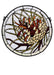 This handsome round Pine Cone window is an original Meyda Tiffany's design. Handcrafted utilizing the copperfoil construction process and 235 pieces of Rootbeer granite Sky Blue, Grass Green, and Clear textured stained art glass encased in a solid brass frame, each window is a unique creation. Mounting bracket and jack chain included.