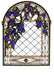 Radiant Concord Purple jewels, Vineyard Green leaves and glistening dew kissed Bark Brown vines wrap around a Golden Sunshine bands on a diamond grid of Clear seeded glass. Bring sunny vineyards to your own home with this lovely Meyda Tiffany original stained glass window. A solid brass hanging bracket and chains are included