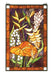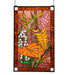 Like walking through a lush tropical flower garden of Begonias, Birds of Paradise Flamingo Lilies and lush green foliage. This lavish floral designed window is bordered with Flax Brown rectangular tiles and accented in each corner with a Clear square glass jewel. The Meyda Tiffany original art glass window is created using our famous copperfoil construction process. Each window is framed in Antique finished Solid Brass and includes mounting brackets with 6 inches of chain. Custom sizes, designs and colors are available.
