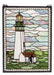 Meyda Tiffany's original Yaquina Head Lighthouse Window is a tribute to Oregon's tallest and second oldest continuously operating lighthouse. A rope pattern frames the Scarlet roofed White and Green building on rolling Green grass and cloud filled Wispy Blue sky. Handcrafted utilizing the copperfoil construction process and 270 pieces of stained art glass encased in a solid brass frame. Mounting bracket and jack chain included.