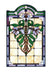 Plum Blue glass with Cobalt jewels and Spring Green accents border this window of Art Nouveau inspired Plum Blue blossoms and buds laced with Spring Green stems and leaves on Ivory glass. this Meyda original window is a creation to be forever treasured. Mounting bracket and chain included.