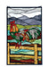 Meyda Tiffany's original Rooster Window will inspire you to rise early. The Russet and Emerald rooster, perched on an Oak Brown fence is a striking contrast against Green and Earth Brown fields and Grey sky and Mountains. Handcrafted utilizing the copperfoil construction process and 178 pieces of stained art glass encased in a solid brass frame. Mounting bracket and jack chain are included.