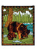 Next to a sparkling Turquoise river winding through rolling Green meadows with a stand of Pine Green trees, a mother Brown bear with her cubs play. This picturesque scene is handcrafted of a beautiful selection of stained art glass. The Meyda Tiffany Original window is framed in a rustic Bark and Leather Brown diamond border. Brass mounting bracket and chains are included