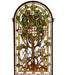 This stylized version of Louis Comfort Tiffany's famous Tree of Life is a Meyda Original design. A Bark Brown tree with Plum Pink flowers and Summer Green leaves adorn a Clear Blue arched window. The window is handcrafted utilizing the copperfoil construction process and 416 pieces of stained art glass encased in a solid brass frame. Mounting bracket and chain are included.