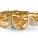 A large clam shell with a gold interior works as a decorative bowl with beachy charm. Position on an entryway table or living room table to hold objets or other important items. It is also available in a smaller size.