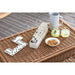 A beautiful piece of functional decor, this Domino Set is anything but ordinary. The domino pieces are real, white bone with black dots and their case is made from fragments of bone that have been shaped into tiles and inlaid by hand to create a rich mosaic look. Place on a side table, coffee table, or bar top for decor that also functions as a classic game to thrill guests.