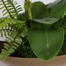 A Graceful, Flowing White Orchid Seems To Float Over A Bed Of Naturally Preserved Moss In A Textured Cast Aluminum Antique Brass Boat.