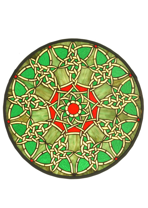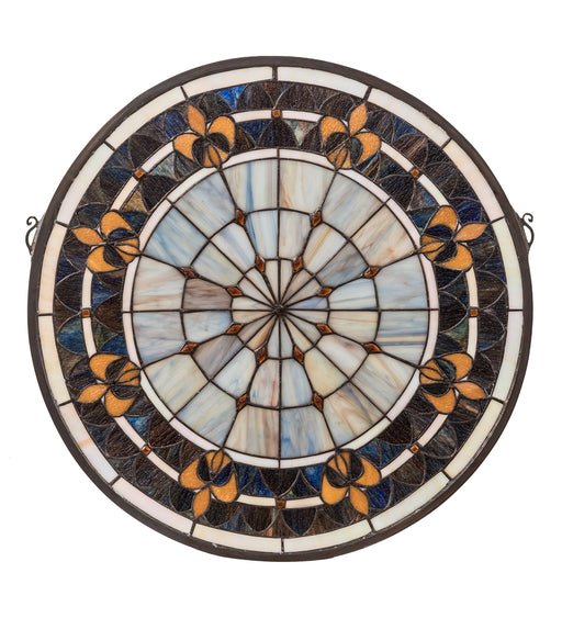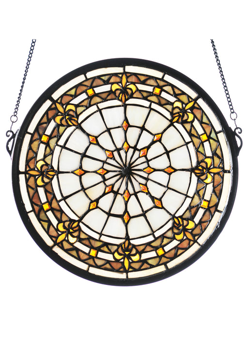 A Meyda Tiffany original design, the Fleur-de-Lis medallion window is an intricate design of Golden tri-petaled irises and jewels against Twilight ...