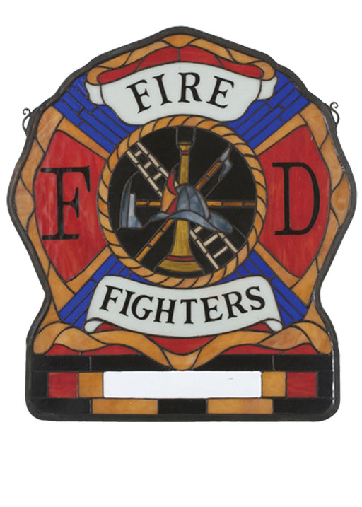 The Firefighter Logo symbolizes heroism and bravery, as depicted in the Fireman's Shield in this personalized stained glass window. This Personaliz...
