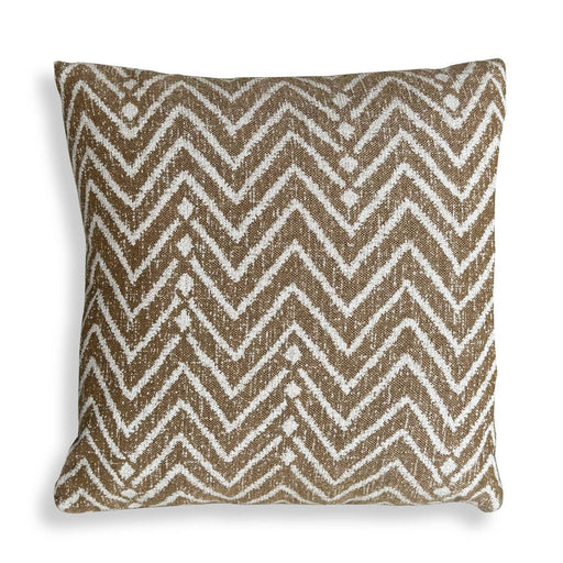 A Toffee Ground Showcases A Cream Tribal Geometric Inspired Pattern In Sunbrella Solution Dyed Acrylic. Complete With An Invisible Zipper And Fille...