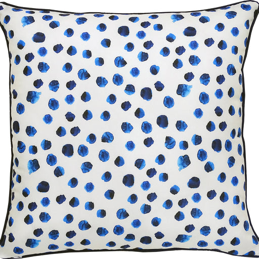 Watercolour-like polka dot patterns give this outdoor pillow a playful appeal. Against the sleek white backdrop, the royal and navy blue tones elev...