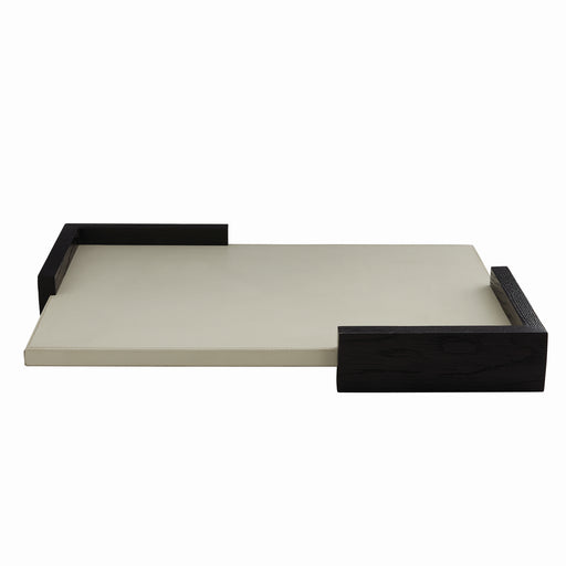 Elegant geometry and refined materials bring this contemporary tray to life. Wrapped entirely in supple ivory leather with tailored stitching is be...