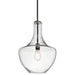 The Everly 19.75" one light bell shaped pendant comes with a curved, glass blown container featuring clear glass and an Olde Bronze finish for a simple and elegant look. The Everly's versatile design coordinates with a variety of styles and can be used singularly, in multiples or arranged at varying heights to elevate the room.