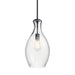 The Everly 17.75" one light hour glass shaped pendant comes with a curved, glass blown shade featuring clear glass and a Black finish for a simple and elegant look. The Everly's versatile design coordinates with a variety of styles and can be used singularly, in multiples or arranged at varying heights to elevate the room.