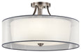 The Lacey 28" 5 light semi flush features a classic look with its Venetian detail of curves in Antique Pewter finish and satin etched cased opal inner diffusers and white translucent organza outer shade. The Lacey semi flush is perfect in several aesthetic environments, including transitional and traditional.