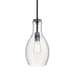 The Everly 13.75� one light hour glass shaped pendant comes with a curved, glass blown shade featuring clear glass and a Black finish for a simple and elegant look. The Everly's versatile design coordinates with a variety of styles and can be used singularly, in multiples or arranged at varying heights to elevate the room.
