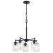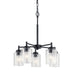 The modern Winslow 5-light chandelier in a Black finish with Clear Seeded glass shade pair beautifully with the linear arms, bringing light and dimension to a space.