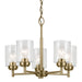 Update your space with the clean, classic, early-electric look of the Winslow 5-light chandelier. A focal piece that's sure to be all the rage, this Winslow fixture easily jazzes up luxe industrial lifestyles. Winslow's clear seeded glass filters light beautifully and is removeable for ease of cleaning or replacement. Plus, its on-trend natural brass finish offers an exciting contrast to light walls and is easy to coordinate with other lighting, hardware, and plumbing fixtures.