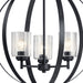 The modern Winslow 3-light chandelier in a Black finish with Clear Seeded glass shade pair beautifully with the linear arms, bringing light and dimension to a space.