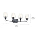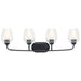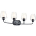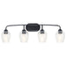 The Valserrano 33.50 inch 4 light vanity light features wine goblet shaped clear seeded glass shades with a clean design in Black finish. A perfect addition in several aesthetic environments including transitional, traditional or farmhouse decor.