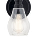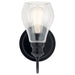 An updated twist on a popular vanity lighting style, this Greenbrier collection 1 light wall sconce's teardrop-shaped shade features a clear seeded glass for added visual interest. Tailored and a subtly detailed arm in a brilliant Black finish bring a sophisticated feel.