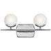The Jasper 16.5 inch 2 light halogen vanity light features Satin Etched Cased Opal Glass globe lighting paired with a tapered Chrome bar to create the ultimate Mid Century vanity light. The Jasper halogen vanity light works well in bathroom or powder room settings.