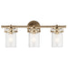 Champagne Bronze Brinley 24" 3 light vanity light features a modern vintage look with its Brushed Nickel finish and clear glass. Inspired by mason jars, the Brinley vanity light is perfect in several aesthetic environments, including modern vintage and transitional.