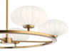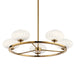 The Pim 40" 5 light round chandelier features a nostalgic mid century modern design in Fox Gold and rounded shaped satin etched cased opal glass. A perfect addition in several aesthetic environments including contemporary and transitional.