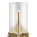 The Nye 9.75" 1 light wall sconce features a mid century modern design in Brushed Natural Brass and clear glass. A perfect addition in several aesthetic environments including contemporary and transitional.