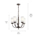 The Kennewick 5 light chandelier takes the traditional and updates it first with individual fabric shades in crisp white and then with an Olde Bronze finish. Rather than being the center of attention, this chandelier enjoys shedding light on the entire room.