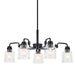 The Aivian 30" 5 light chandelier scoffs at clichés with its industrial-style arms in a Black finish. Its angled knurled detail is a welcome surprise. When vintage bulbs are used, this piece really comes into its own. It's both refined and edgy, making it truly one of a kind.